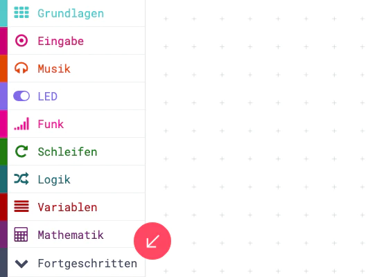 Unter https://makecode.calliope.cc findest du die neueste Version. Klicke dann in der Block-Bibliothek auf den Block Fortgeschritten um die MotionKit Erweiterung hinzuzufügen Scrolle ganz nach unten.