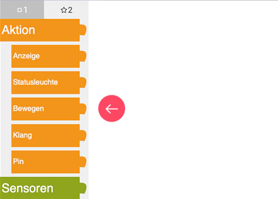 Unter http://lab.open-roberta.org findest du den Editor, wähle Calliope mini als Roboter-Umgebung aus.