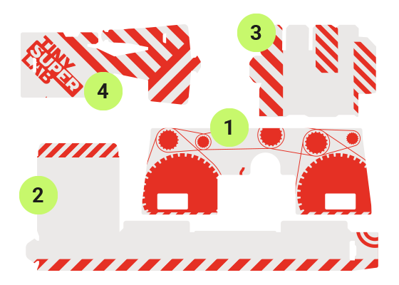 Diese beiden Bauteile halten deinen Roboter zusammen. Es gibt ein Fach für jedes Element: den Servo, das Batteriefach, die Lichtplatine und die Motionplatine. Auf den ersten Blick sehen sie beide gleich aus. Du musst genau hinschauen und auf ein paar Kleinigkeiten achten, um sie richtig zu verbauen.
